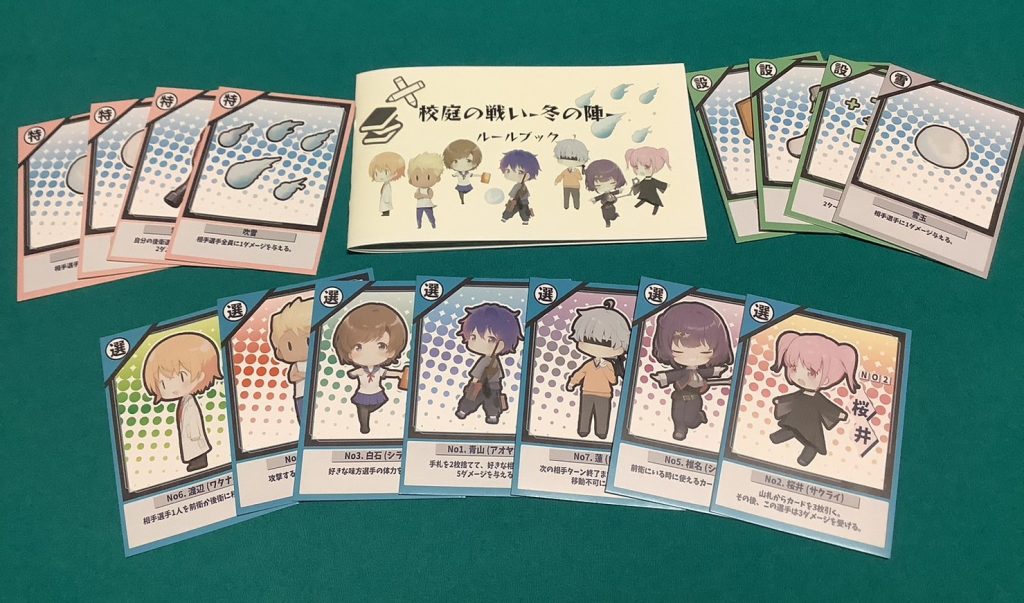 「校庭の戦い-冬の陣-」は、雪合戦をテーマにした対戦カードゲームです。