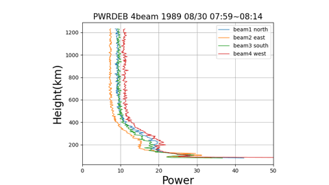 今回の研究で使用するデータは京都大学生存圏研究所から直接頂いたデータを使用する。電離圏のデータは京都大学生存圏研究所のwebページで直接閲覧することが可能だが、今回のデータはMUレーダーが観測した時のデータを使用した。webページで閲覧できるものは一度加工されており、ノイズなどが省かれた状態になっている。なので、今回調査する宇宙浮遊物の計数については観測時のデータが適していると考えた。