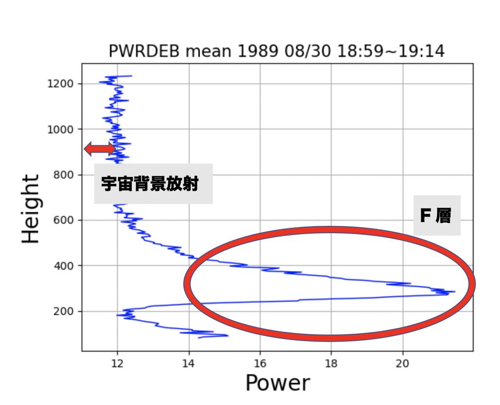 F層とは電離圏において高度約200kmから400kmの範囲にできる電子密度が高くなる場所で、主に酸素原子が電離してできる層である。この領域を測ることで宇宙天気予報を成り立たせることができる。D層やF層と比べると現れる範囲や電子密度が大きくなりやすい傾向にある。ただし、電離圏では太陽活動や地磁気活動などによって電離嵐やデリンジャー現象といった異常現象が起こる可能性があり、そういった現象が現れると電子密度の分布が大きく変わることになる。今回は、太陽活動や地磁気活動が大きく影響しない日時として1989年8月30日から8月31日の電子密度を可視化し、F層ピークの日変動を調査した。