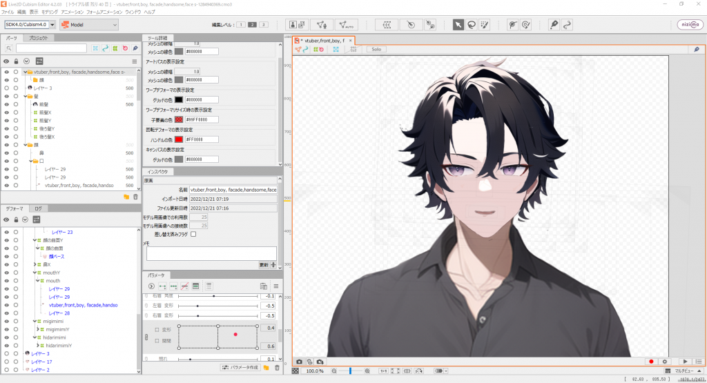 4、Live2Dでパーツを動きに合わせて変形させたり、動かす。
